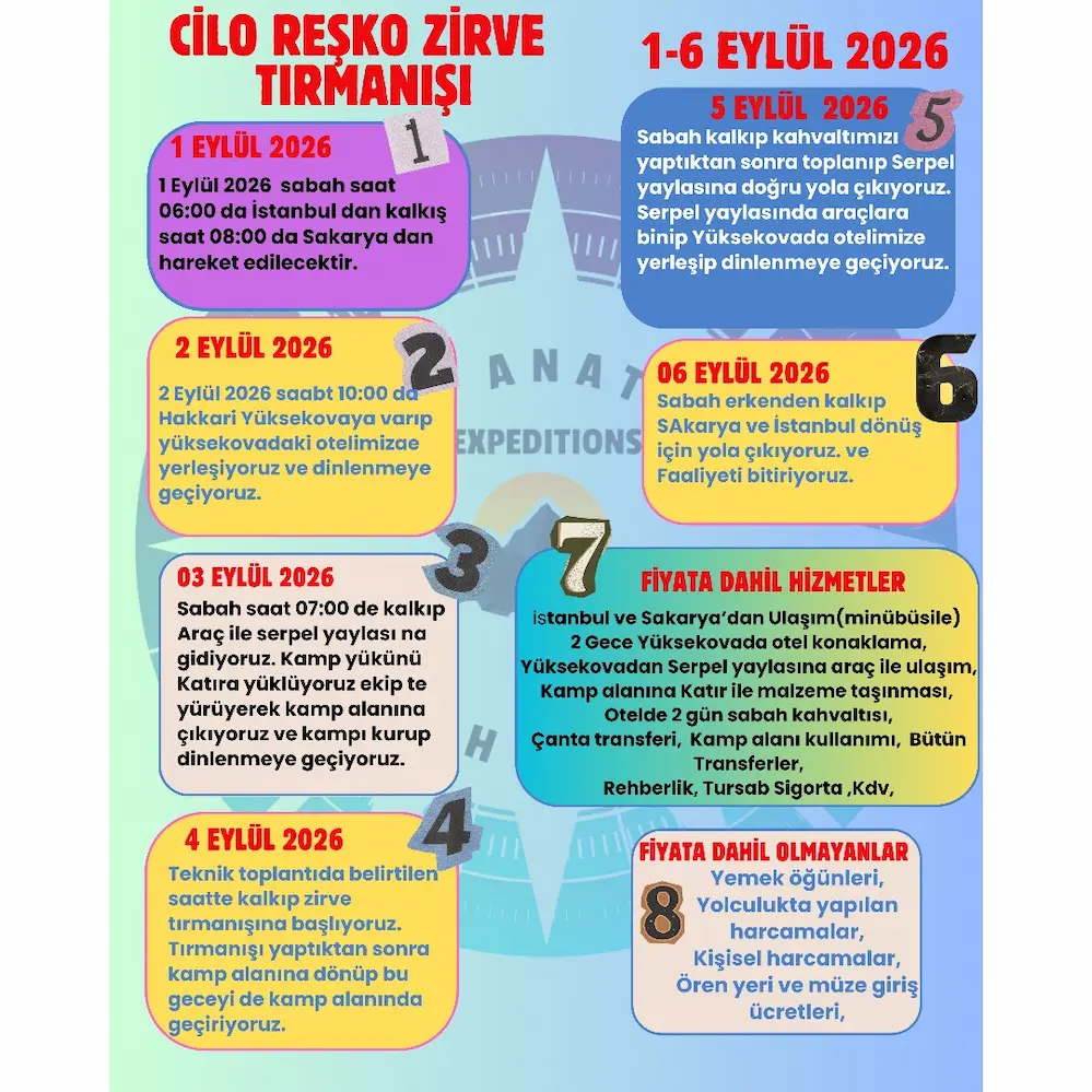 01 Eylül 2026 saat 06:00 da İstanbul dan araç hareket edecektir. Sırasıyla duraklara uğrayarak Sakarya dan saat 08:00 da ekibi alarak 12:00 da Ankara dan ekibi aralarak Hakkari ye doğru yola çıkıyoruz.